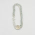 This Dutch button bracelet is made of first grade silver and green amethyst. The bracelet is 18 cm long. The button is approximately 10 mm and there is a pearl in the middle. The amethyst is approximately 3.5 mm and is hand-knotted into a strand.